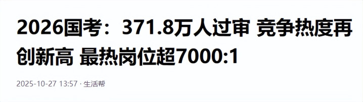 围绕2026年国考的报道普遍提到过审约371万人,竞争比常被写成74:1或更高口径。