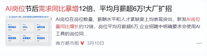 有报道引用招聘趋势,AI相关岗位需求同比增长10—14倍,求人倍率3—5:1,部分机器人、储能运维岗位供需比甚至超过5:1。