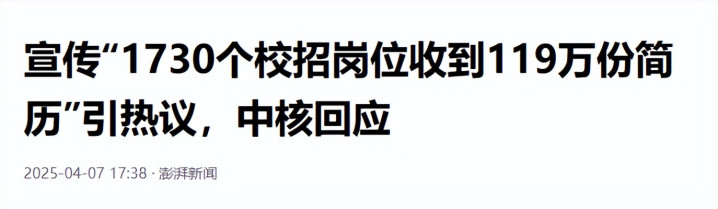 多篇报道提到校招“有效岗位”不足、投递量爆炸,有人把某央企校招写成极端样本,1730个岗位收到119万份简历,录取率不足0.67%。